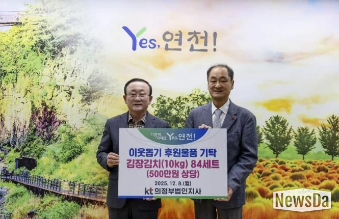 이번 기탁식은 연천군청에서 진행됐으며 KT의정부법인지사 관계자와 연천군 관계자가 참석한 가운데 따뜻한 나눔의 의미를 되새기는 시간을 가졌다. 전달된 김장김치는 관내 독거어르신, 저소득가정 등 겨울철 식생활 지원이 필요한 가구에 배부될 예정이다.