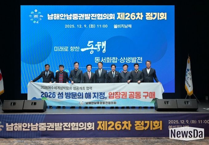 뉴스다 최광묵 기자 | 여수시는 9일 경남 남해군 쏠비치남해에서 ‘남해안남중권발전협의회 제26차 정기회’가 개최됐다고 밝혔다.