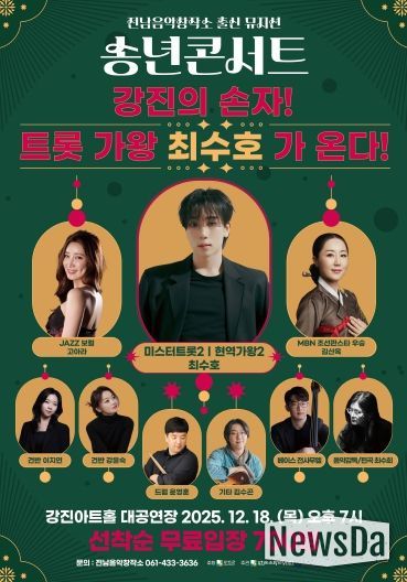 뉴스다 최광묵 기자 | (재)강진군문화관광재단 전남음악창작소가 오는 18일 강진아트홀 대공연장에서 2025년 한 해의 성과를 군민과 나누는 특별 기획공연 '2025 전남음악창작소 뮤지션 송년콘서트'를 개최한다.