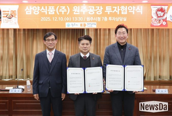 원강수 시장은 “이번 투자협약이 원주와 삼양식품이 함께 성장하는 상생협력의 모범 사례가 될 수 있도록 모든 지원을 아끼지 않겠다”라며, “지역 산업 경쟁력 강화와 일자리 창출 등 실질적인 성과를 거둘 수 있도록 최선을 다하겠다”라고 말했다.