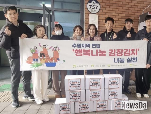 뉴스다 최광묵 기자 | 수원시 장안구 연무동은 지난 10일 보훈원 내 보훈원 보훈교육연구원 보훈재활체육센터 수원보훈요양원 직원들이 사회공헌 활동 일환으로 마련한 김장김치 10kg 10박스를 기부받았다.