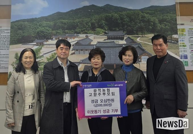 뉴스다 최광묵 기자 | 광적농협 산하 ‘고향을 생각하는 주부모임’에서 지난 10일 지역 내 취약계층의 따뜻한 겨울나기를 돕기 위해 광적면에 온품캠페인 성금 50만 원을 기탁했다.