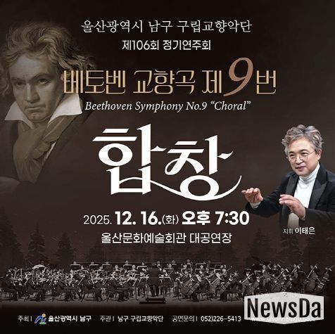 뉴스다 최광묵 기자 | 울산 남구 구립교향악단(지휘자 이태은)은 16일 오후 7시 30분, 울산문화예술회관 대공연장에서 ‘2025 송년음악회’를 열고 한 해를 마무리하는 품격 높은 클래식 무대를 선보인다.