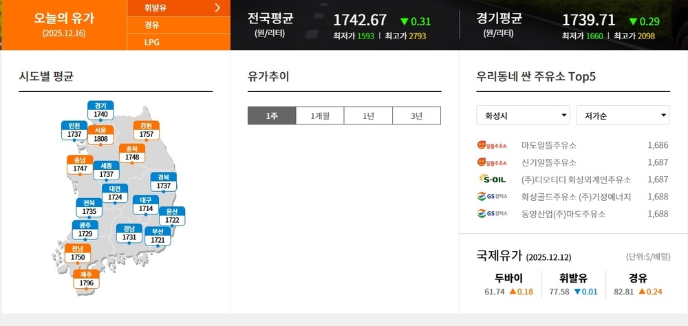 ▲화성시 휘발류 제일 싼 주유소 1686원 마도알뜰 주유소