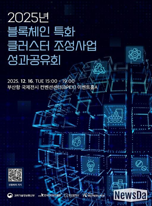 뉴스다 최광묵 기자 | 부산시는 오늘(16일) 오후 3시 부산항국제전시컨벤션센터에서 '2025년 블록체인 특화 클러스터 조성' 사업 성과공유회를 개최한다고 밝혔다.