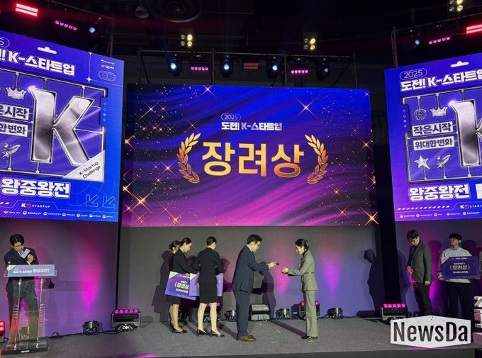 뉴스다 최광묵 기자 | 충남콘텐츠진흥원은 충남 천안 복합형 스타트업파크 입주기업이자 천안시 씨스타(C-STAR) 기업인 ㈜워터베이션이 국내 최대 규모의 창업경진대회인 ‘도전! K-스타트업 2025’ 왕중왕전에서 장려상을 수상했다고 16일 밝혔다.