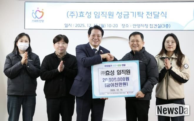 한편, 안양시는 이번에 전달받은 성금을 경기사회복지공동모금회를 통해 저소득가정 자녀 학원비 지원사업에 활용할 계획이다.