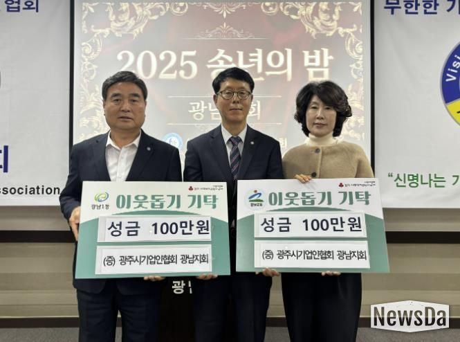 뉴스다 최광묵 기자 | 광주시 기업인협회 광남지회 김영선 회장은 지난 15일 열린 ‘2025 송년의 밤’ 행사에서 광남1동과 광남2동에 각각 100만 원씩, 총 200만 원의 이웃돕기 성금을 기탁했다.