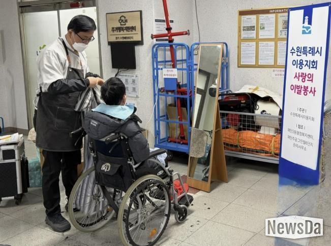 뉴스다 최광묵 기자 | 지난 16일, 수원시 영통구 매탄3동 주공6단지에서 수원시 이용지회가 저소득 어르신과 장애인을 위한 사랑의 이발 봉사를 진행하며 지역사회에 따뜻한 온기를 전했다.