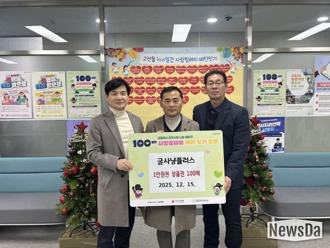 뉴스다 최광묵 기자 | 의정부시 고산동주민센터는 12월 15일 산곡동 소재 굴요리 전문점 ‘굴사냥플러스’가 어려운 이웃을 돕기 위해 1만 원권 외식상품권 100매를 기탁했다고 밝혔다.