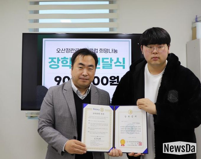 뉴스다 최광묵 기자 | 오산장애인종합복지관은 지난 15일 오산정란로타리클럽으로부터 경제적 어려움을 겪는 장애가정 학생 지원을 위한 장학금 90만 원을 기탁받고 전달식을 개최했다고 밝혔다.