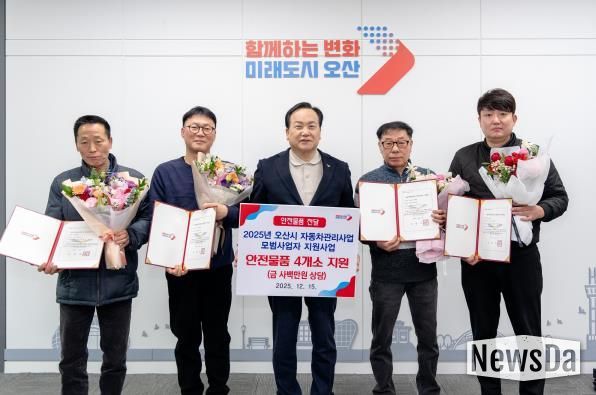 뉴스다 최광묵 기자 | 오산시는 지난 15일 지역 자동차관리산업의 건전한 발전과 시민 대상 서비스 품질 향상에 기여한 ‘2025년 오산시 자동차관리사업 모범사업자’ 4개 업체를 선정하고, 모범사업자 지정증을 전달했다.