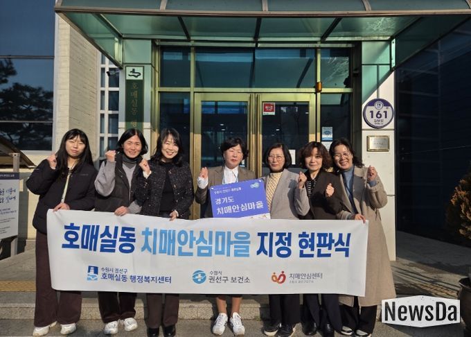 뉴스다 최광묵 기자 | 수원시 권선구보건소 치매안심센터가 호매실동을 ‘치매안심마을’로 지정했다. 권선구보건소는 17일 호매실동 행정복지센터에서 ‘호매실동 치매안심마을 지정 현판식’을 열었다.