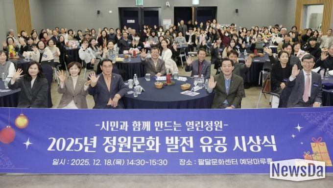 뉴스다 최광묵 기자 | 수원특례시는 18일 팔달문화센터 예당마루홀에서 ‘2025년 정원문화 발전 유공 시상식’을 열었다.
