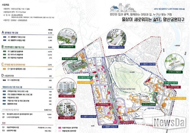 이번 사업을 통해 망산공원지구에는 정주환경 기반 강화, 주민현의증진 생활거점 조성, 주거환경 개선 및 관리체계 마련, 사업관리 지원 등 4가지 주요사업이 실시될 예정이다.