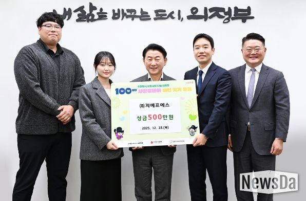 뉴스다 최광묵 기자 | 의정부시는 12월 18일 관내 기업 ㈜지에프에스가 지역사회 나눔 실천의 일환으로 성금 500만 원을 기탁했다고 밝혔다.