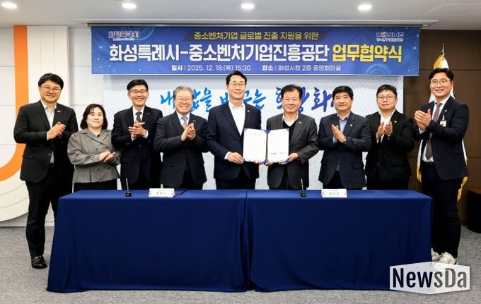 뉴스다 최광묵 기자 | 화성특례시가 지난 18일 중소벤처기업진흥공단과 관내 중소기업의 글로벌 진출 지원을 위한 ‘수출물류지원사업 업무협약’을 체결했다.