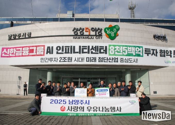 뉴스다 최광묵 기자 | 남양주시는 12월 19일 서울우유협동조합 남양주 낙농축산계가 관내 취약계층을 위해 멸균우유 약 2만 팩(1천만 원 상당)을 후원하는 ‘서울우유 사랑의 나눔행사’를 진행했다고 밝혔다.