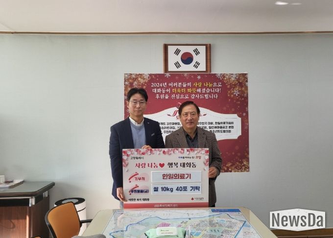 이봉재 대화동장은 “지역사회의 소외된 이웃을 위해 따뜻한 나눔을 실천해 주신 한일의료기에 감사하다”며 “소중한 쌀은 후원자의 뜻에 따라 도움이 필요한 가구에 신속하고 공정하게 전달해 모두가 따뜻한 연말을 맞이할 수 있도록 하겠다”고 전했다.