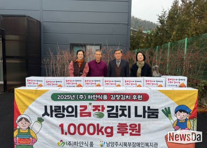 뉴스다 최광묵 기자 | 남양주시는 17일 남양주시북부장애인복지관에서 ㈜하얀식품(대표 장유라)의 후원으로 ‘사랑의 김장김치 전달식’을 개최하고, 지역 내 취약계층 장애인 가정에 김장김치 1,000kg을 개최했다고 밝혔다.