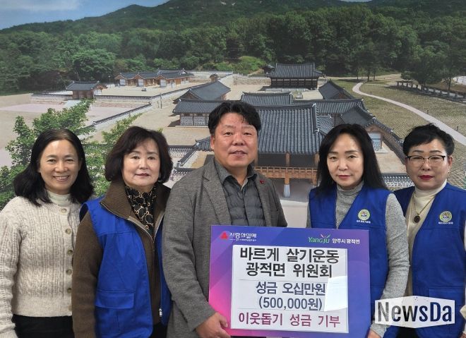 뉴스다 최광묵 기자 | 바르게살기운동 광적면위원회가 지난 17일 관내 취약계층을 돕기 위해 광적면행정복지센터에 성금 50만 원을 기부했다.