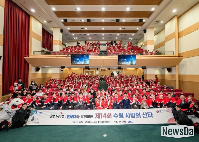 뉴스다 최광묵 기자 | ‘kt wiz·ENA와 함께하는 제14회 수원 사랑의 산타’ 행사가 19일 수원시청 대강당에서 열렸다.