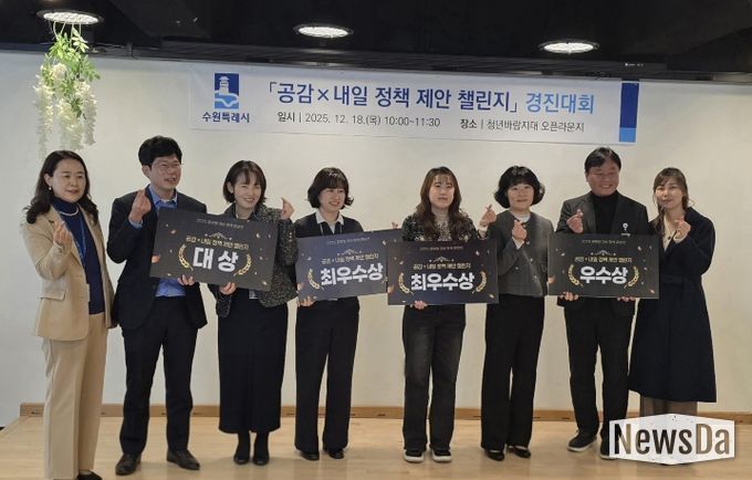 뉴스다 최광묵 기자 | 수원특례시가 개최한 ‘2025 공무원 대상 제안 공모전 '공감×내일 정책 제안 챌린지' 경진대회’에서 ‘신(新)사장 과태료 0원 프로젝트(찾아가는 원산지 안심 컨설팅)’가 대상을 받았다.