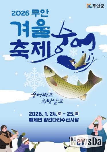 뉴스다 최광묵 기자 | 전남 무안군은 겨울철 최고의 별미로 꼽히는 숭어를 소재로 오는 1월 24일(토)부터 25일(일)까지 해제면 주민다목적센터와 양간다리 수산시장에서‘2026 무안겨울숭어축제’를 개최한다.