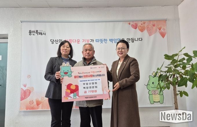 처인구 백암면 행정복지센터에는 지난 10일 공인중개사협회 백암면분회가 이웃돕기 성금 77만원을 기탁했고, 15일에는 ㈜오엠코리아가 300만원을 기탁했다.