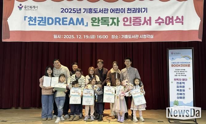 뉴스다 최광묵 기자 | 용인특례시 기흥도서관은 19일 기흥도서관 시청각실에서 ‘천권DREAM 완독자 인증서 수여식’을 개최했다고 22일 밝혔다.