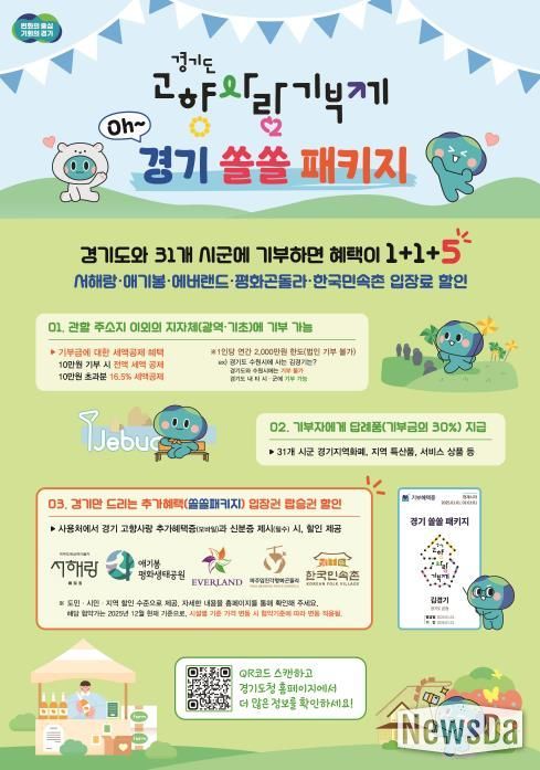 뉴스다 최광묵 기자 | 경기도가 고향사랑기부제 참여 확대와 지역경제 활성화를 위해 기부자에게 에버랜드, 한국민속촌 등 주요 관광시설 이용 할인 혜택을 제공한다.
