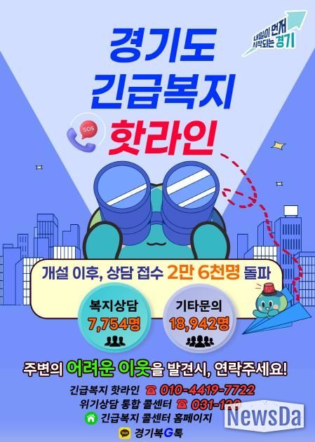 경기도가 2022년 8월부터 위기도민 발굴을 위해 ‘긴급복지 핫라인’을 운영한 결과 3년 3개월 만에 상담 접수 2만 6천 명을 넘어섰다.