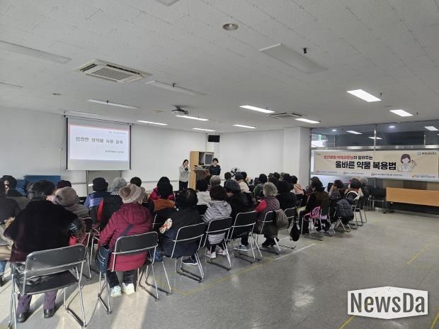 뉴스다 최광묵 기자 | 포천시 소흘건강생활지원센터는 지난 18일 포천시 노인복지관 남부분관 대강당에서 만 65세 이상 어르신을 대상으로 ‘노년기 올바른 약물 복용 및 관리 교육’을 실시했다.