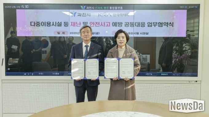 뉴스다 최광묵 기자 | 과천시는 지난 19일 한국마사회와 ‘재난 안전 강화를 위한 공동대응’ 업무협약을 체결했다고 22일 밝혔다. 이번 협약은 재난 발생 시 신속한 대응 체계를 마련하고, 지역사회 안전 관리 역량을 높이기 위해 추진됐다.