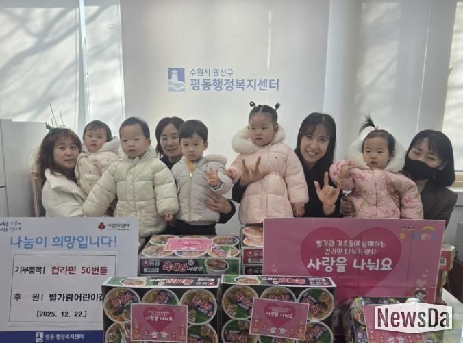 뉴스다 최광묵 기자 | 지난 22일 별가람어린이집에서는 연말연시를 맞이하여 이웃 돕기 후원 물품 컵라면 50 상자를 평동 행정복지센터에 전달했다.