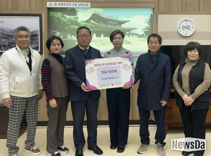 뉴스다 최광묵 기자 | 광주시 남한산성면 생활개선회는 22일 남한산성면 행정복지센터를 방문해 이웃돕기 성금 50만 원을 기탁했다.