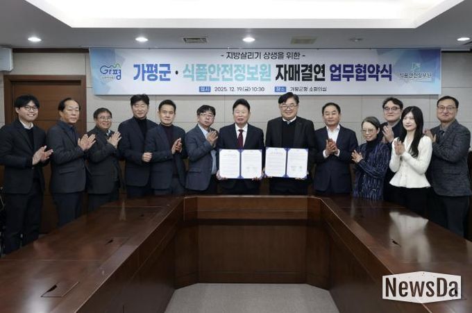 뉴스다 최광묵 기자 | 가평군이 식품안전정보원과 손잡고 지역경제 활성화와 지방소비 촉진을 위한 상생 협력에 나선다.