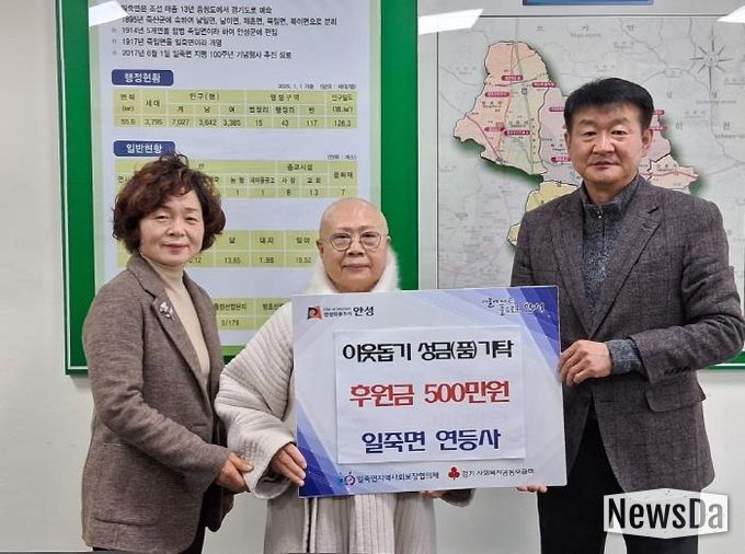 뉴스다 최광묵 기자 | 일죽면 행정복지센터는 지난 19일, 안성시 일죽면 화봉리에 위치한 연등사에서 저출산 가구 지원을 위해 500만 원의 기부금을 전달했다. 이번 기부는 지역 내 저출산 문제 해결과 아이 양육에 어려움을 겪는 가정을 돕기 위한 뜻깊은 자리로 마련됐다.