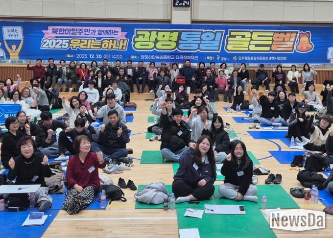 뉴스다 최광묵 기자 | 민주평화통일자문회의 광명시협의회는 지난 20일 광명하안북초등학교 다목적체육관에서 ‘2025. 우리는 하나!’를 슬로건으로 시민과 자문위원이 함께하는 ‘광명 통일골든벨’ 행사를 성황리에 개최했다.