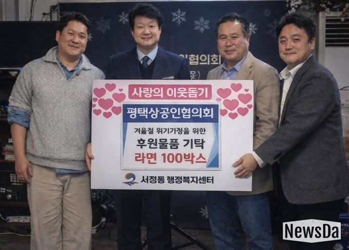뉴스다 최광묵 기자 | 평택시 서정동 행정복지센터는 지난 18일 평택상공인협의회가 겨울철 복지 사각지대에 놓인 취약계층을 돕기 위한 라면 100박스를 기부했다고 밝혔다.