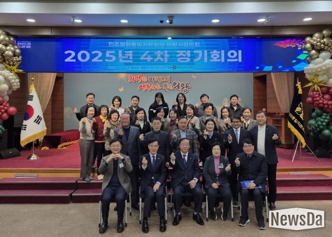 뉴스다 최광묵 기자 | 민주평화통일자문회의 의왕시협의회가 12월 19일 시청 대회의실에서 자문위원 등 45명이 참석한 가운데‘화해·협력의 남북관계 재정립을 위한 정책방향’을 주제로‘2025년 4차 정기회의’를 개최했다.