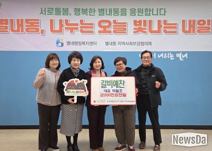 뉴스다 최광묵 기자 | 남양주시는 지난 18일 별내행정복지센터에서 별내동 소재 음식점 갈비예찬이 연말을 맞아 관내 어려운 이웃을 돕기 위해 후원금 200만 원을 기탁했다고 22일 밝혔다.