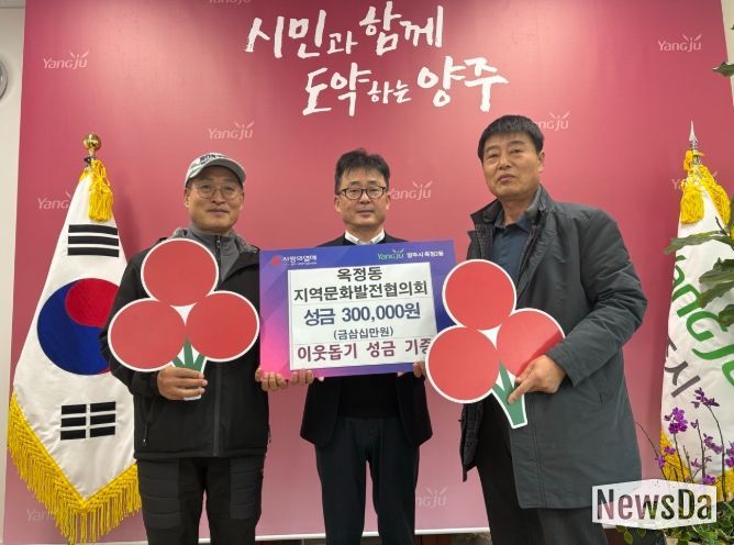 뉴스다 최광묵 기자 | 옥정동 지역문화발전협의회가 12월 22일 옥정2동 행정복지센터에서 지역 내 어려운 이웃을 돕기 위한 성금 30만 원 기부식을 하며 나눔과 상생의 가치를 실천했다.