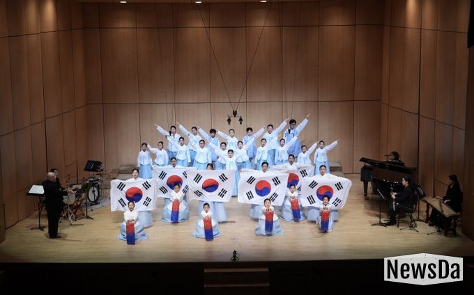 두 번째 무대에서는 단원들이 한복을 입고 ‘홀로 아리랑’ 등을 청년예술단체 ‘마므로’ 팀의 국악 반주와 함께 선보였고, 청사초롱과 태극기를 활용한 안무를 더해 전통의 아름다움과 애국의 정서를 담아내 관객들에게 깊은 여운을 선사했다.