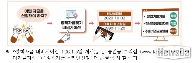 중소기업 정책자금은 중소벤처기업진흥공단 누리집을 통해 내년 1월 5일부터 신청할 수 있다. 서울과 지방 소재 기업은 1월 5~6일(월, 화), 경기 및 인천 소재 기업은 1월 7~8일(수, 목) 양일간 신청이 가능하다.
