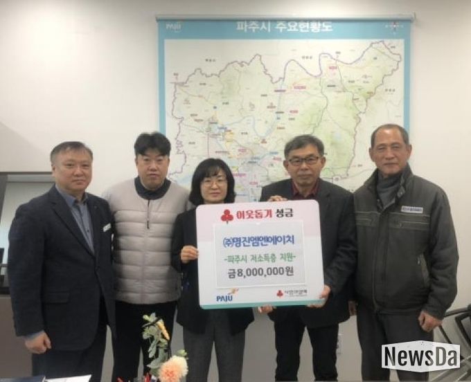 뉴스다 최광묵 기자 | 파주시는 지난 22일 관내 전문건설업체인 ㈜명진엠엔에이치로부터 불우이웃 돕기 성금 800만 원을 기탁 받았다고 밝혔다.