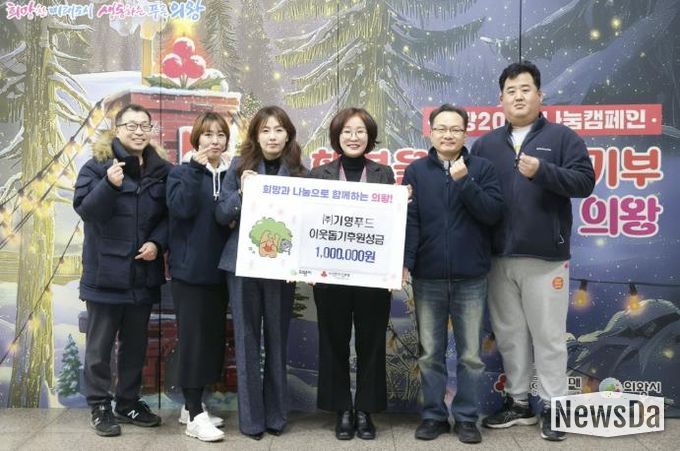 뉴스다 최광묵 기자 | 의왕시가 12월 22일 (주)기영푸드로부터 어려운 이웃을 돕기 위한 성금 100만원을 기부받았다고 밝혔다.