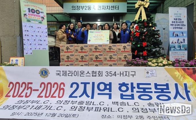뉴스다 최광묵 기자 | 의정부시 의정부2동주민센터는 12월 20일 국제라이온스협회 354-H지구 제2지역이 ‘100일간 사랑릴레이 배턴 잇기’에 동참해 취약계층을 위한 라면 30상자를 기부했다고 밝혔다.
