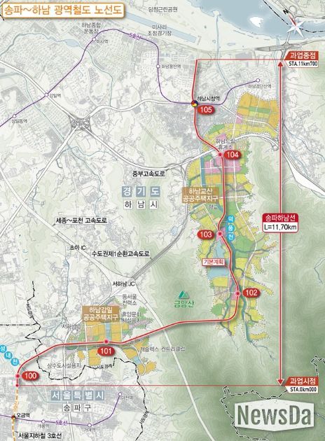 뉴스다 최광묵 기자 | 경기도는 송파하남선 광역철도 건설사업의 도 시행 구간인 2‧3‧4공구의 일괄입찰 공사 사업자 선정을 위한 입찰을 공고했다고 23일 밝혔다.