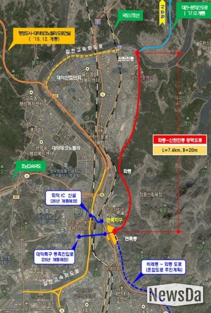 뉴스다 최광묵 기자 | 대전시는 대덕구 연축동~신탄진 용정초교를 잇는 ‘와동~신탄진동 도로개설사업’이 22일 기획재정부 재정사업평가위원회 심의를 거쳐 예비타당성조사 대상사업으로 선정됐다.